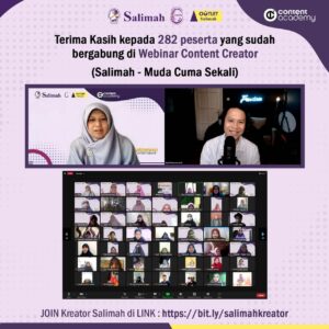 Jakarta (30/10) – Ormas Persaudaraan Muslimah (Salimah) menyelenggarakan pelatihan konten kreator secara daring pada Ahad (30/10). Kegiatan yang diikuti ratusan peserta ini digawangi oleh Divisi Bisnis dan Wirausaha, Induk Koperasi