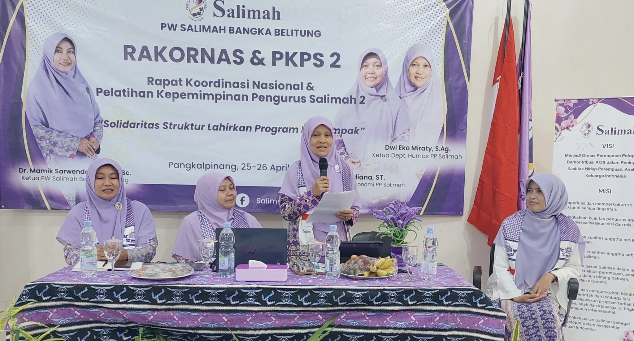 Rakornas dan PKPS 2 diikuti oleh seluruh pengurus PW Salimah Provinsi Bangka Belitung, dihadiri Dewan Pertimbangan Salimah Wilayah (DPSW) Provinsi Bangka Belitung, dan menghadirkan narasumber dari Pimpinan Pusat (PP) Salimah, yaitu Rosdiana selaku Ketua Departemen Ekonomi dan Dwi Eko Miranty selaku Ketua Departemen Hubungan Masyarakat.