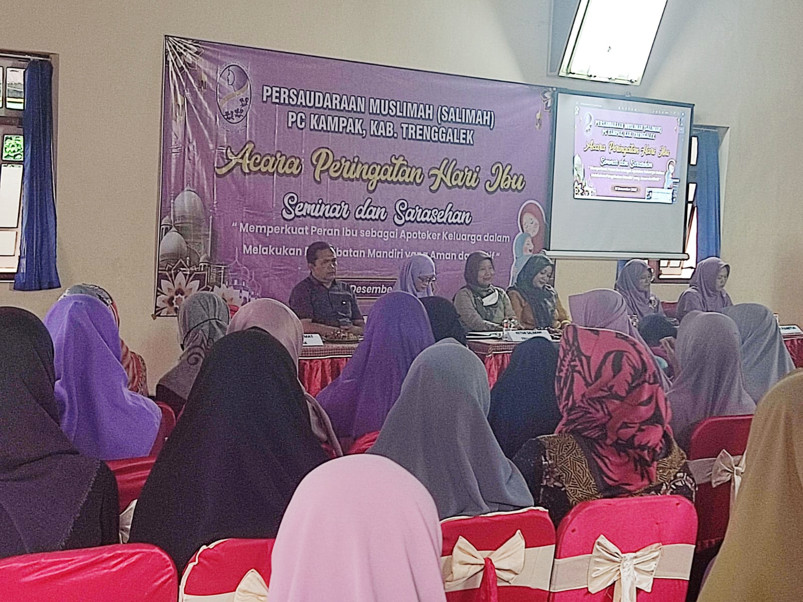 Trenggalek (16/12) – Semarak peringatan Hari Ibu tahun 2022 sudah semakin terasa hembusannya, meskipun tanggal 22 Desember belum menyapa. Sebagaimana agenda yang digelar oleh PC Salimah Kecamatan Kampak, Kabupaten Trenggalek, Jawa Timur. Pada hari Jum’at, bertepatan dengan tanggal 16 Desember 2022, PC Salimah Kampak mengadakan sarasehan kesehatan dengan tema “Memperkuat Peran Ibu sebagai Apoteker Keluarga dalam Melakukan Pengobatan Mandiri yang Aman dan Efektif”.
