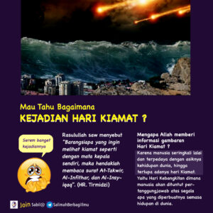 Bacalah Al Quran, ada banyak ayat menginformasikan bagaimana peristiwa besar Hari Kiamat bermula.Rasulullahpun berkata, “Barangsiapa yang ingin melihat kiamat seperti dengan mata kepala sendiri, maka hendaklah membaca surat At-Takwir, Al-Infithar,